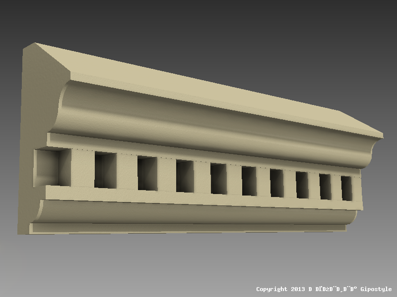 Изготовлен из пенополистирола марки ПСБ-25 плотностью 25кг/м.куб. Декоративные элементы армированы специальным эластичным покрытием толщиной 3-5мм, которое надежно предотвращает от механических повреждений, негативного воздействия атмосферных осадков и максимально защищает элемент лепнины от ультрафиолетового излучения.